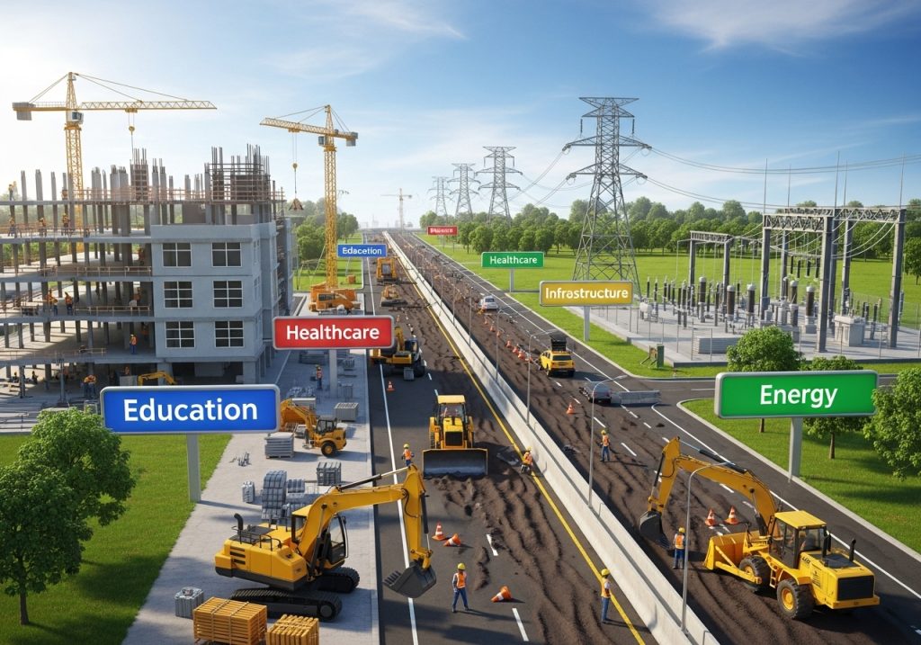 - Social Infrastructure (Education, Healthcare, Water/Sanitation):